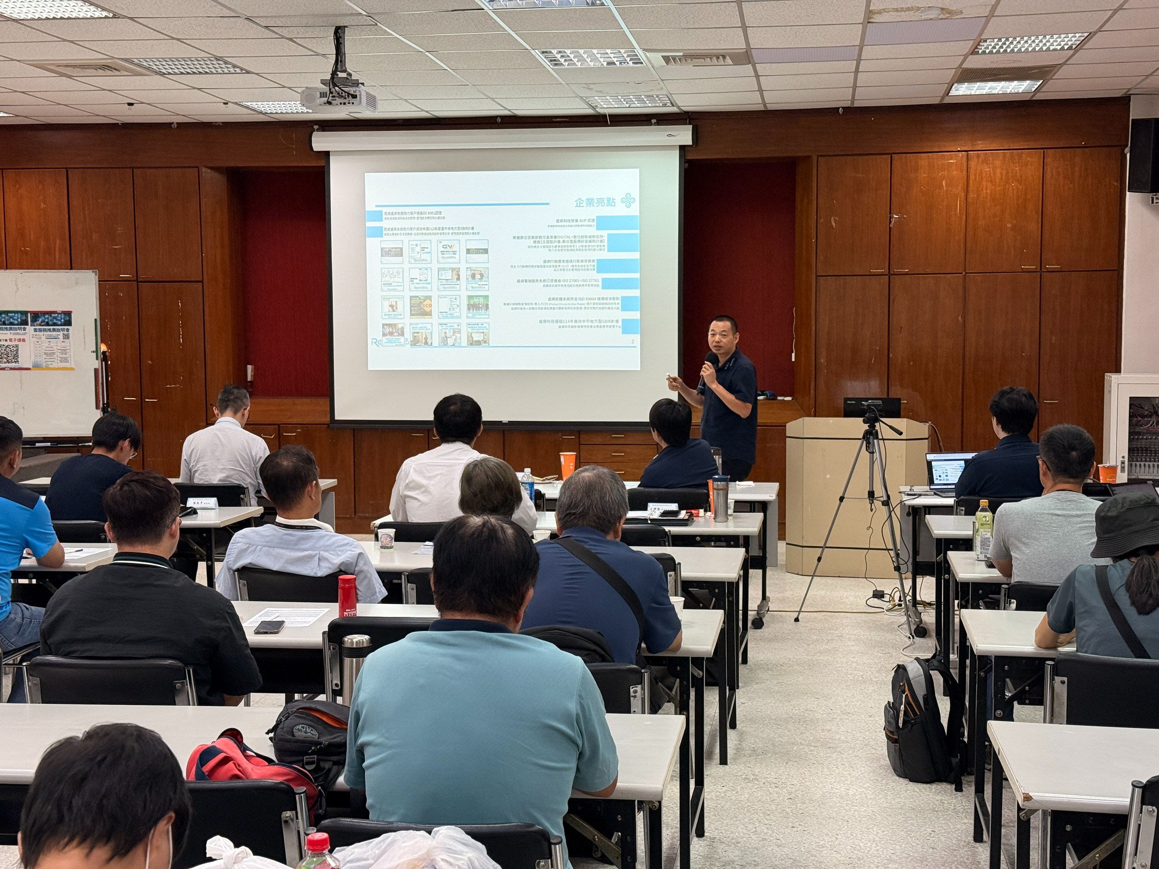 2025年10月1日,盛網科技資深產品經理王譯隆受 台中市電腦公會 邀請,於台中世界貿易中心 301會議室進行專題演講,主題為【無痛減碳與雲端管理應用】。